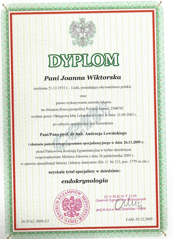 SPECJALISTA ENDOKRYNOLOGII